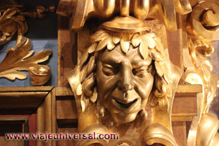 - La entrada a la escalera recuerda los antiguos arcos triunfales por sus pilastras estriadas con capiteles. Destacan las pilastras por estar acanalas y tienen medallones, artesonados, decorados con frisos de tipo vegetal, los restos ornamentales están constituidos por conchas, candelabros, puttis, frontones, peces enrollados, follaje, son decoraciones puestas de moda en ultramar.