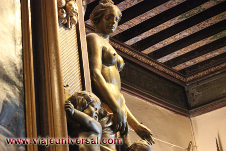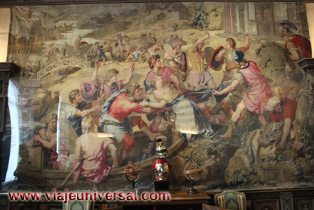 más confortable esta estancia y que tenga un verdadero aspecto de una sala renacentista. Frente a la cama, está el cuadro titulado “Andrómaca se desmaya al enterarse de la muerte de Héctor” es una copia atribuida al pintor Flamenco Cornelis Van Haarlem de una obra perdida de Primatice, uno de los artistas fundadores de la escuela manierista de Fontainebleau. En la torre se puede admirar el bargueño, original mobiliario español en nogal, pan de oro y hueso, que fue utilizado para guardar cosas preciosas, comprometedoras, secretos.