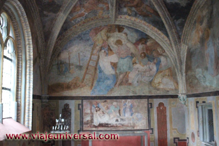 La siguiente estancia es la habitación de oración, es el lugar del castillo dedicado al rezo. No se sabe cuál era la función de esta sala anteriormente pero su distribución actual recuerda la importancia de un lugar de oración en una casa privada del siglo XVI.