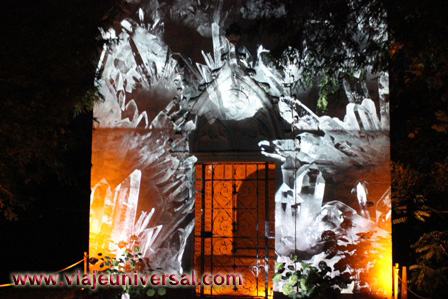 A las 21,45 horas estábamos en la puerta del castillo para el espectáculo. En diferentes puntos del jardín había pequeñas proyección con temas esotéricos. A las 23,00 era la proyección