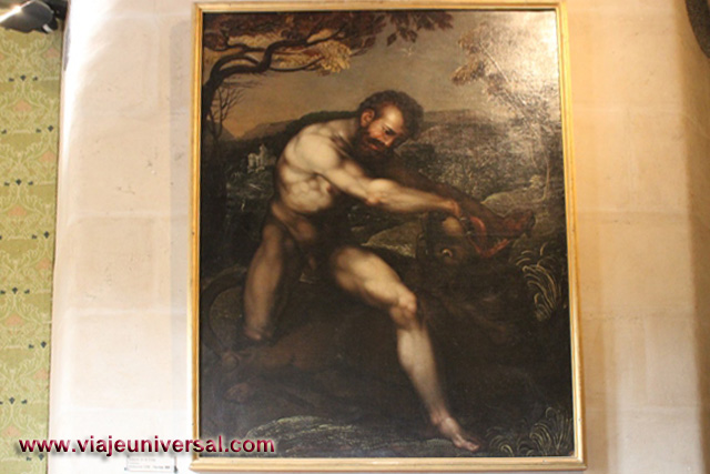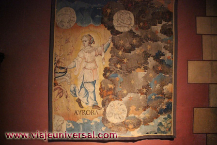 Colgados de las paredes hay unas decoraciones del siglo XVI, se trata de unos animales exóticos: dromedarios, leones comiendo. El otro, es un bosque imaginario.