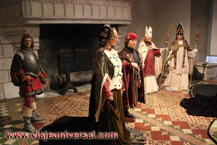 La siguiente estancia es la Sala del Matrimonio o Sala VIII, donde se representa la ceremonia nupcial de Carlos VIII y la duquesa de Ana de Bretaña, boda que tuvo lugar en este castillo de Langeais, el día 6 de diciembre de 1491.