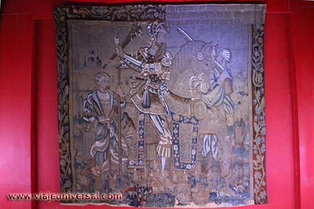 Los tapices expuestos en esta sala, son de Flandes, están datados en el siglo XVI, son característicos de una producción en serie. La presencia de un escudo blasonado introducía un motivo diferenciador en el acabado.