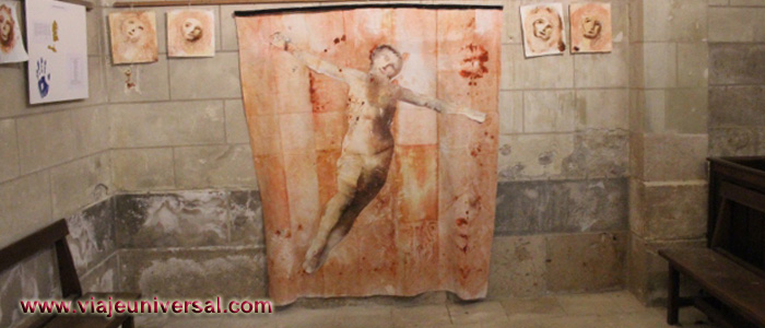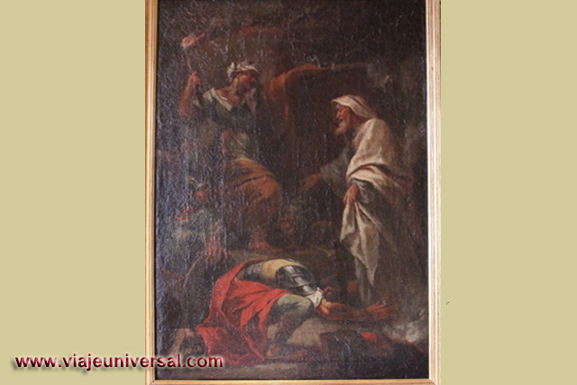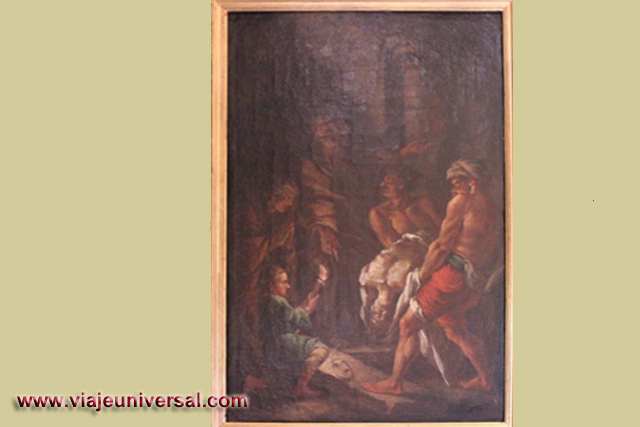 Los dos bajorrelieves de madera que tiene la sala representan dos pasajes de la Pasión de Cristo: La Flagelación y el Beso de Judas.