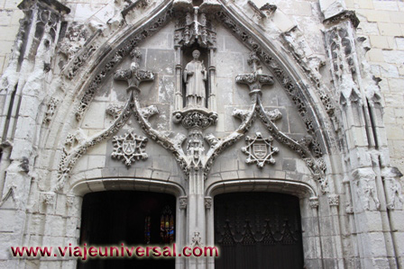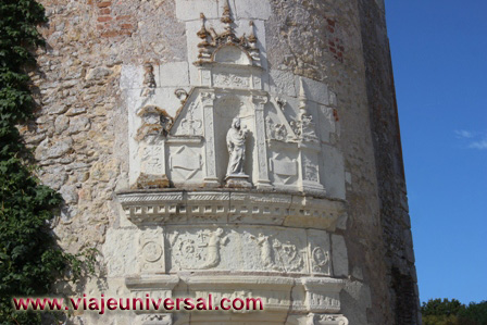 Al frente presenta una gran chimenea. En todo el contorno y en todos los salientes se esculpió un castillo, con sus torres y su camino de ronda. Se pueden distinguir trece personajes, damas, guardias e incluso un bufón.