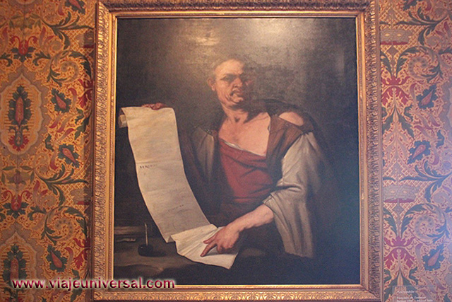 En la sala hay un cofre con los dos motivos, está datado en el siglo XVI, sobre el cual se colocaron los retratos de los esposos. Delante de la venta se expone una cerradura con forma de dragón, también se puede ver el busto de Seneca, cuya obra se