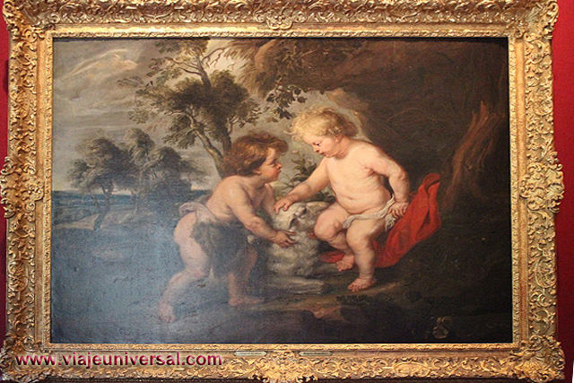 En la sala de Luis XIV donde podemos ver la obra “La infancia de Jesús y san Juanito”, obra del pintor Pierre-Paul Rubens (1577-1640), realizada óleo sobre lienzo, esta datada en el siglo XVII.