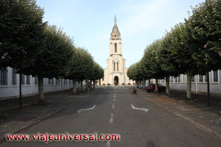 Sobre un amplio paseo vemos la torre puntiagudo de la iglesia de san Vicente de Paul de Morcenx (Francia), (GPS N 44.0329123 E 0.9132514) situada en Place Jean Jaurès.