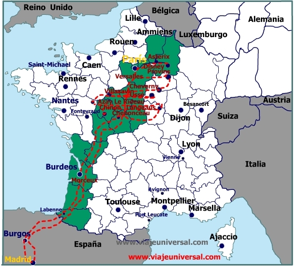 Día 19 de agosto (lunes) Ruta: Azay-le-Rideau-Castillo de Langeais-Distancia 10 km tiempo 15'--Chinon- Km 25,8; tiempo 31'- Chenonceaux