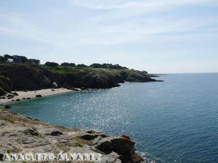 Es un pueblo con un bonito puerto antiguo y con un paseo que tuvimos que hacer sin parar la AC; sólo había un punto donde estaba permitido aparcar y estaba señalizado con poca antelación; no reaccionamos a tiempo y nos lo saltamos. El paseo, de unos 10 kilómetros, bordea una península. Es denominada Costa Salvaje por las batientes olas sobre rocas graníticas oscuras. Nos pareció un paisaje bonito, pero no excepcional; ni pudimos pararnos a hacer una foto.