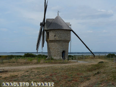 Antes de llegar al pueblo, pero muy próximo, nos paramos a ver un molino de viento en pleno funcionamiento. Se dedica a moler trigo. Es un molino de planta circular, hecho de piedras de granito, más bien pequeño, pero muy bonito.