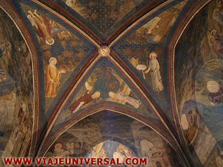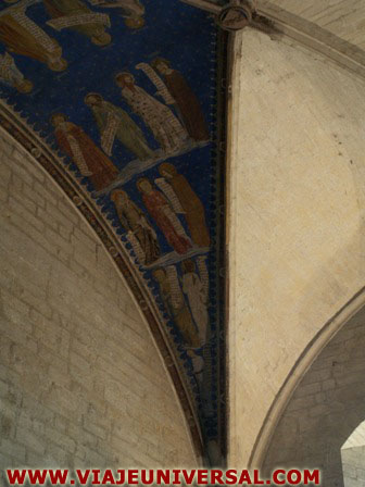 Bajo el papado de Clemente VI, se decoraron las bóvedas con telas de color azul, ribeteadas con damascados color oro para simular una constelación que pareciese estar en el propio cielo. El incendio de 1413 destruyó toda la decoración y los frescos de las paredes que representaban motivos religiosos sobre la última cena.