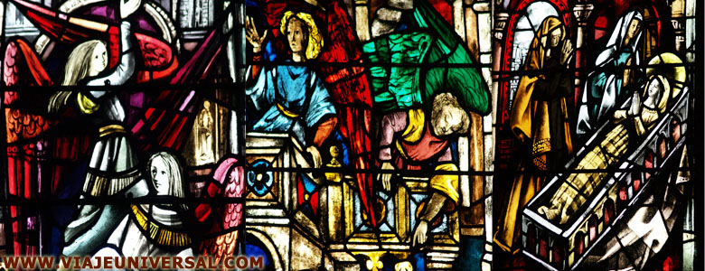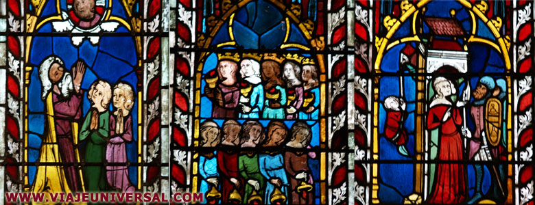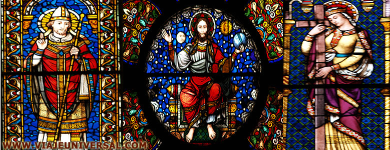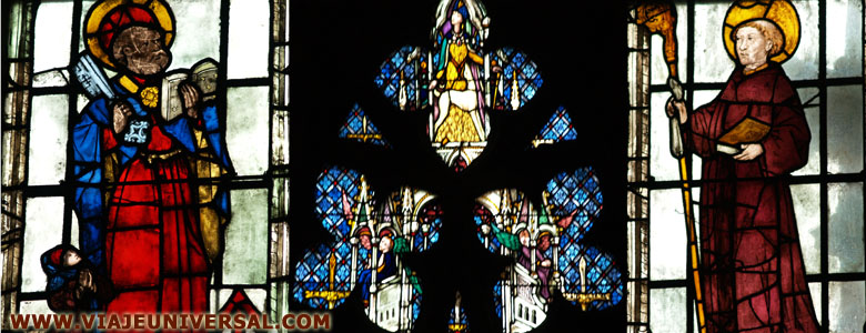 El vitral numero 10; se encuentra situado el primer lugar de la galería derecha: nos habla: La armonía de los Condes Ferrette; san José; San Juan Bautista; Sant Paul.