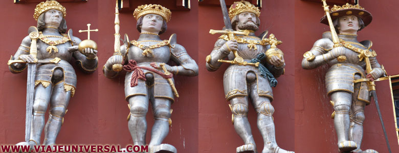 Los frescos exteriores pertenecen al estilo imperante de renacimiento renano, fueron pintados en 1698 por Jean Gabriel, artista local. Se representan figuras alegóricas, símbolos que hacen referencia al buen gobierno y de la justicia, después, fueron engalanados durante la dominación de los cantones suizos. En una de sus fachadas está colgada una copia de la celebre ‹‹Klapperstei›› o piedra de los habladores; esta piedra se les ataba al cuello a las personas que calumniaban y se les hacia atravesar la ciudad en día de mercado para conocimiento de toda la comunidad. Estos frescos han sufrido numerosas restauraciones que han modificado el aspecto original.