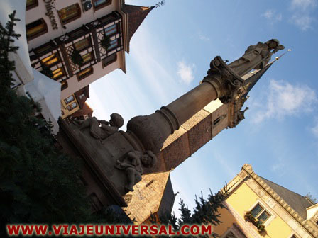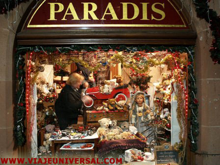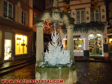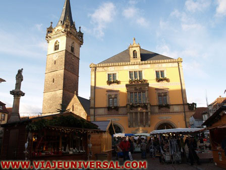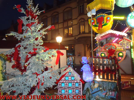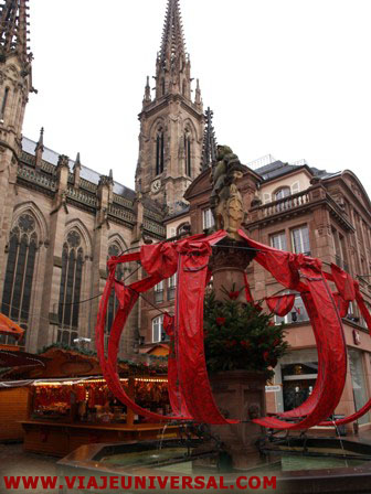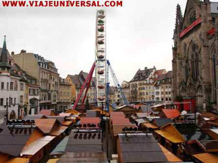 Una gran noria preside la plaza central, se encuentra rodeada de innumerables casetas para albergar el mercadillo de navidad. Son muchos los comerciantes y artesanos que venden directamente sus productos: comida, salchichas, cocido alsaciano, churros, vin chaud (caliente), además de todo tipo de decoraciones para las navidades.
