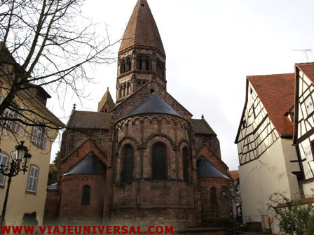 Es uno de los raros templos protestantes que lograron mantener los antiguos vitrales. Gracias a ellos hoy en día se puede saber como era la vida en la ciudad y en la región de Alsacia.