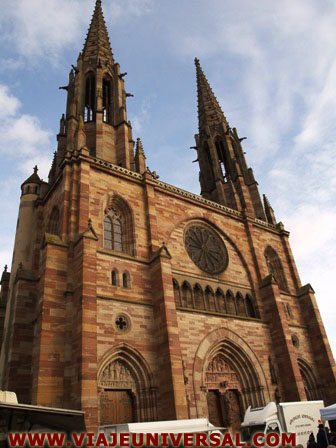 Marchamos en dirección a la catedral, nos separan escasos 200 metros del centro urbano. La plaza de la Reunión es el centro neurálgico de Mulhouse, podemos comprobar como en el entorno de la iglesia, y en plena plaza se celebran todos los años la festividad de Noël en Mulhouse.