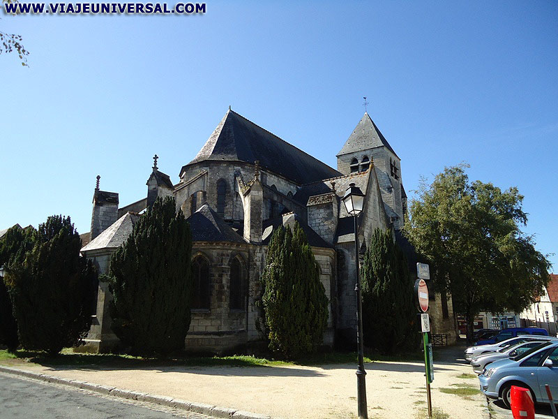 El interior, la planta se divide en una gran nave central, dos naves laterales y un deambulatorio alrededor del coro. Las naves laterales no desembocan en un crucero o transepto. Las bóvedas son de estilo gótico. En el siglo XV se construyeron las capillas entre los contrafuertes y se añadieron las dos capillas de las naves laterales. La capilla de la nave derecha tiene una vidriera original del siglo XV, donde se representa a San Pedro bautizando a los fieles; alrededor de su cabeza hay escrito ‹‹San Pedro bautiza a diez mil judíos››. Un poco más lejos hay un bajo relieve del siglo XVI, donde se representa la natividad de Jesús con el donante arrodillado acompañado por San Pedro.