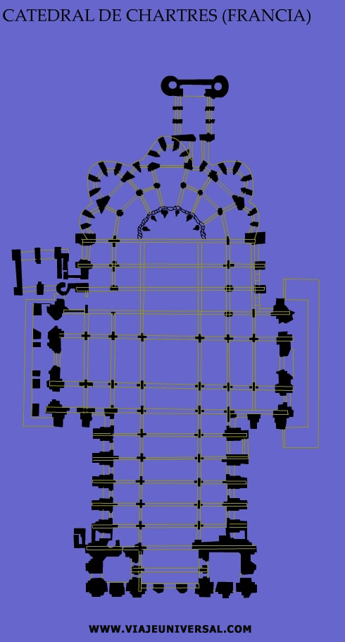 Las medidas de la catedral confieren la trascendencia de la arquitectura religiosa y la verdadera magnitud de la dificultad que supuso en la época la construcción de la Catedral de Chartres, con 130 metros de largo y desde 32 a 46 metros de ancho. La superficie construida es de 10.875 metros cuadrados; la altura de la torre sudoeste es de 105 metros; la altura de la Torre noroeste es de 113 metros.