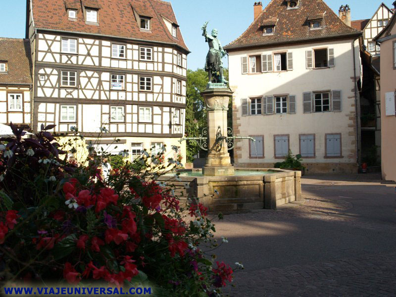 La Fontaine Schwendi es una fuente pública que representa la figura de Lazare Schwendi (1522-1583), oficial de justicia imperial, luchó en Hungría y capturó la ciudad de Tokay (Tokaj) en 1565. Según la leyenda, se trajo unas cuantas plantas de los famosos vinos de Hungría que llevo a la ciudad de Kaysersberg y forma parte de los viñedos de Alsacia. La fuente fue construida por el escultor Frédéric-Auguste Bartholdi, muchas de sus obras se encuentran en Colmar, este hombre nació en la cuna de una acomodada familia Alsaciana el 2 de agosto de 1834, estudia escultura en París y expone regularmente en el Salón de París, realiza muchos encargos en París y Estados Unidos. Muere victima de un atentado en Oran el 4 de octubre de 1904 en pleno éxito, fue siempre fiel a sus valores profundos de la libertad republicana, basado en la fraternidad y igualdad de los pueblos. Fue el gran diseñador de la estatua de la Libertad , en 1860 le encargaron el proyecto de elegir un monumento grandioso que tuviera un gran valor simbólico universal y se inspiro en la Atenea del Partenón, el Coloso de Rodas y las alegorías que surgieron durante la Revolución Francesa , propuso la idea de una estatua que representase "La Libertad" iluminando el mundo |