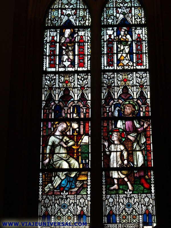 Las vidrieras son del siglo XIII con vivos colores que representan escenas de la Biblia : La ascensión de Elías, la última cena, la vida de Abrahán y Isaac.