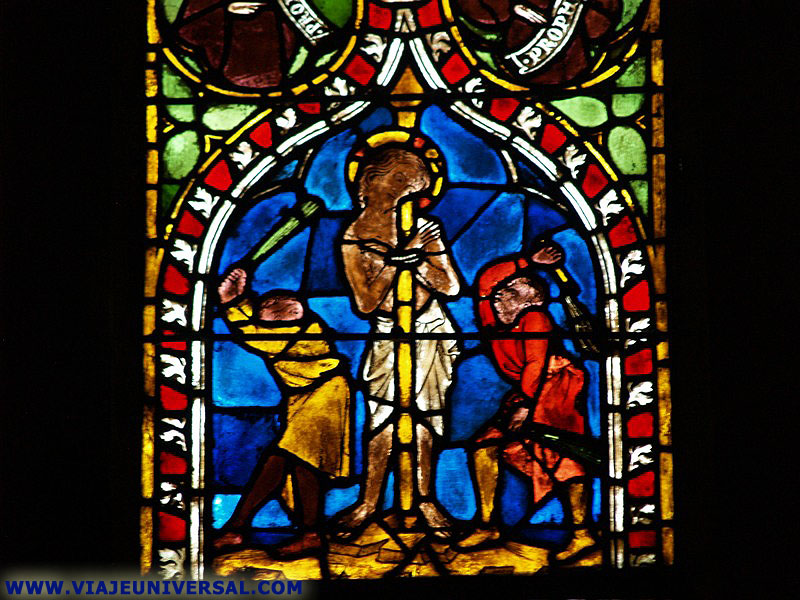 Las vidrieras son del siglo XIII con vivos colores que representan escenas de la Biblia : La ascensión de Elías, la última cena, la vida de Abrahán y Isaac.