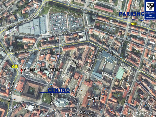 El parking de autocaravanas de Colmar esta situado en la parte Norte de la ciudad, calle de Cavalerie; las coordenadas GPS del lugar corresponden con N48.08254 // E 7.35957 . Es un parking situado en zona azul; el precio de 9,90 euros por 4 horas; horario de pago desde 9,00 horas hasta las 19,00 horas.