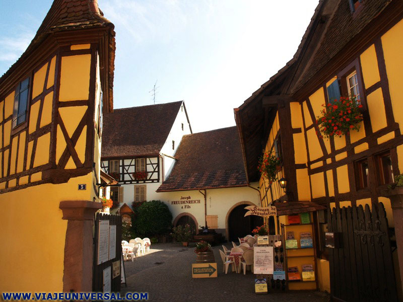 El pueblo esta dedicado casi exclusivamente a la elaboración y venta del vino alsaciano, en las fachadas principales hay unos preciosos carteles que nos anuncian la actividad y la marca del producto de venta: Vinos Baur, Léon Baur, Pierre Henri Ginglinger, Bruno Sorg, Paul Gaschy, además de otros negocios: Boulangerie Marx, Auberge trois Chateaux, Restarant Eguisheim, Au Cheval Blanc, etc. |