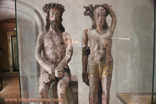A la derecha, la figura de San Sebastián ante la guardia de Diocleciano en el siglo III, fue condenado a morir flechado y después lapidado. Proviene de un lugar de Finisterre.
