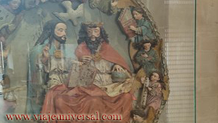 Dentro de una hornacina de cristal podemos ver las figuras “Santa Trinidad”, obra de un escultor anónimo, está datada en el siglo XVI y siglo XVII, realizada en madera policromada. Tiene unas medidas de 137 x 116,5 x 20 cm.