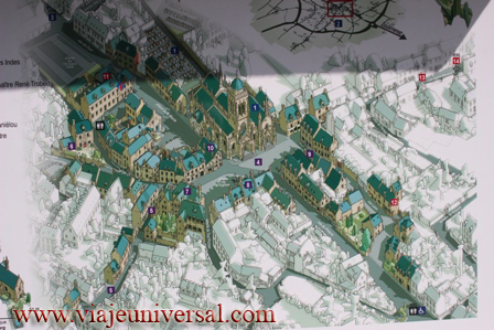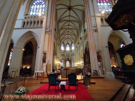 Solamente encontramos abierto el típico sitio que siempre tratamos de evitar, pero caemos, nos ofrecen kebac y hamburguesas, que vamos a hacer si tenemos debilidades que nos llevan al error.Enfrente está la catedral dedicada a Saint Etienne. Su interior es como llegar 400 años antes, está absolutamente despojada de todo ornamento, solamente se pueden ver adosados a las paredes arcosolios unos tienen esculturas de los obispos, hay una escultura yaciente en la nave derecha de un obispo que parece un auténtico rey de la iglesia en la tierra.