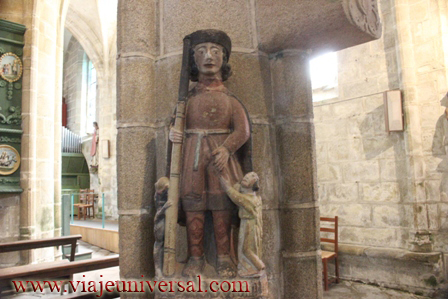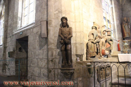 A la izquierda, se puede ver la figura de Cristo llamado Ecce homo, coronado de espinas momento que es presentado ante Poncio Pilatos gobernador de Judea. Procede de Landeda (Brest) cerca de Quimper.
