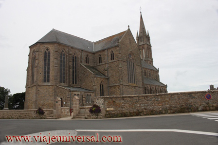 La iglesia fue reconstruida entre 1895 y 1897 (obra iniciada en febrero de 1895) siguendo planos del arquitecto Gustave Bigot sobre los cimientos de la antigua iglesia gótica (siglo XV) que a su vez reemplazó a otro edificio en el Estilo románico (siglos XII-XIII). La aguja, obra de M. Le Naour de Quimper (construida según los planos de Bigot senior).