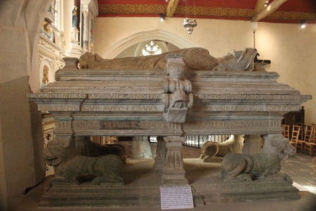 Estaba originalmente en el cementerio de Sainte -Eutrope en Plougonven en la diócesis de Tréguier. El yacente descansaba sobre una caja hecha de placas de piedra kersanton cuyas partes centrales de los lados estaban decoradas con dos ángeles que sostenían un escudo. A los pies del yacente hay una fuente de agua bendita. Aunque es una de las tumbas más completas que han llegado hasta nosotros, ha sido desmantelada, y el museo solo presenta la figura yacente, su perro y las partes laterales y medianas.