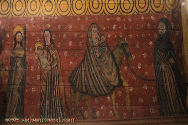 La siguiente escena relata según la visión de San Mateo “La huida a Egipto”. Cuando ya se habían ido, un ángel del Señor se le apareció en sueños a José y le dijo: «Levántate, toma al niño y a su madre, y huye a Egipto. Quédate allí hasta que yo te avise, porque Herodes va a buscar al niño para matarlo».