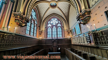 El templo cuenta también con un órgano romántico del siglo XIX, que sigue en uso y es muy apreciado por su sonoridad y excelente conservación. Además, las vidrieras modernas aportan luz y color al interior, representando escenas bíblicas y motivos simbólicos que se integran armoniosamente con la arquitectura gótica del edificio. Junto a ellas, se conservan diversos elementos decorativos como relieves en piedra y madera, escudos heráldicos y detalles escultóricos que enriquecen la atmósfera del conjunto.