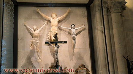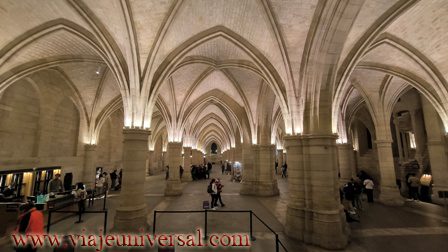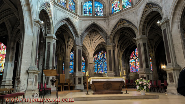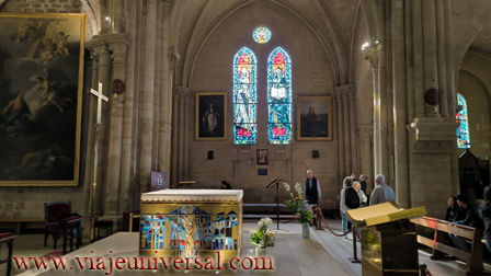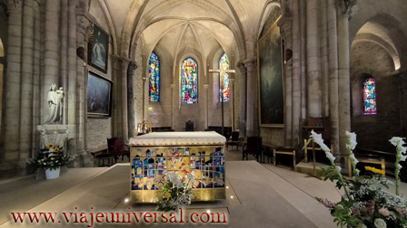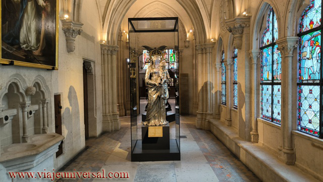 Uno de los espacios más antiguos y enigmáticos del conjunto es la cripta, situada bajo el coro y el transepto. Este recinto subterráneo se asienta sobre los restos de una antigua necrópolis galorromana, y conserva tumbas y vestigios arqueológicos de gran valor. En la actualidad, la cripta acoge exposiciones históricas y artísticas, entre las que destaca la instalación contemporánea conocida como “Le Village des Âmes” (“El Pueblo de las Almas”), creada por el artista Robert Pionnier. Esta obra moderna, compuesta por pequeñas figuras y construcciones simbólicas, ofrece una reflexión poética sobre la memoria y la espiritualidad, en diálogo con el pasado sagrado del lugar.