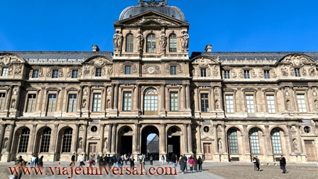 La fachada principal es monumental y simétrica, con columnas corintias, frontones ornamentales y esculturas que representan la pintura, la escultura, la arquitectura, la ciencia y la industria. Cada relieve y estatua tiene un propósito simbólico: mostrar la riqueza cultural, artística y tecnológica de Francia a fines del siglo XIX. Los detalles decorativos son abundantes, pero siempre armonizan con la escala masiva del conjunto, creando una impresión de orden y majestuosidad.