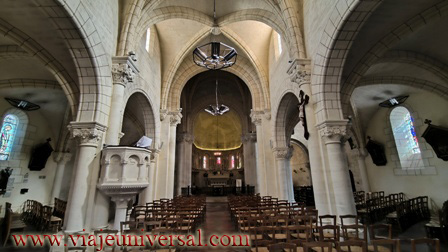 Muy cerca está la iglesia de Nuestra Señora GPS N46.237609 E1.4851476 , es una verdadera joya románica del siglo XII y se terminó en el siglo XIII ya en los inicios del gótico. Tiene un aspecto de fortaleza, no podemos ver la cripta porque solamente abre en verano. Nos llama la atención el pavimento es el original, en muy pocas iglesias se puede ver en la actualidad.