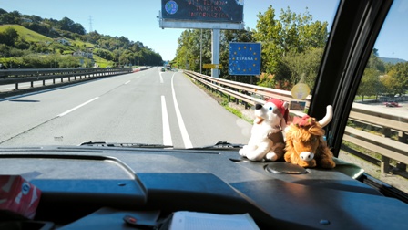 Llegamos a la frontera de Irún donde paramos a comer en el parking reservado para autocaravanas GPS N43.3434302 W1.7605419 .