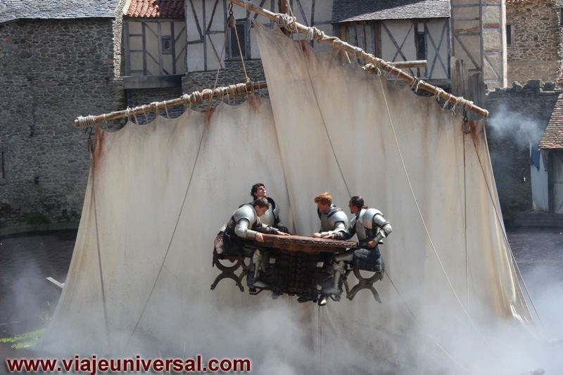 “Les Chevaliers de la Tabla Ronde ”. El escenario es la puerta principal de la antigua ciudad medieval de Puy du Fou, donde se recrea la historia de la Leyenda del Rey Arturo, la obra es corta porque solamente dura unos 15 minutos.