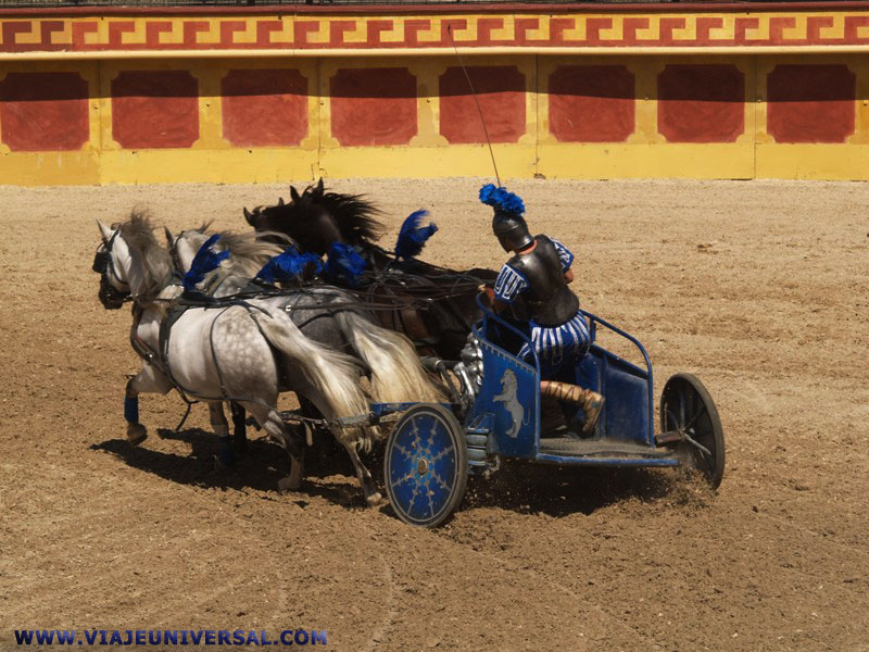 Cuadriga fuera de combate en la obra de Gladiateurs en Puy du Fou, Francia