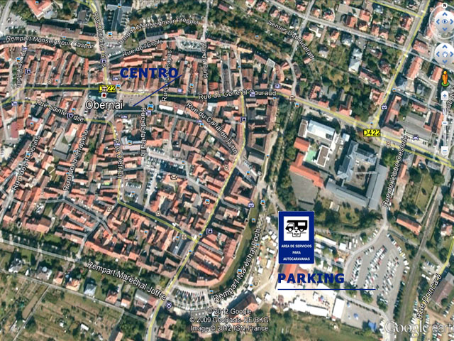 En la ciudad de Obernai se ha habilitado un enorme parking de tierra, recibe el nombre de Remparts, tiene capacidad para más de un centenar de autocaravanas en varias filas. La zona para coches esta protegida por gálibos con lo cual no hay perdida de donde debemos aparcar. Las coordenadas GPS del área de autocaravanas de Obernai es N 48.45973 // E 7.48572.
