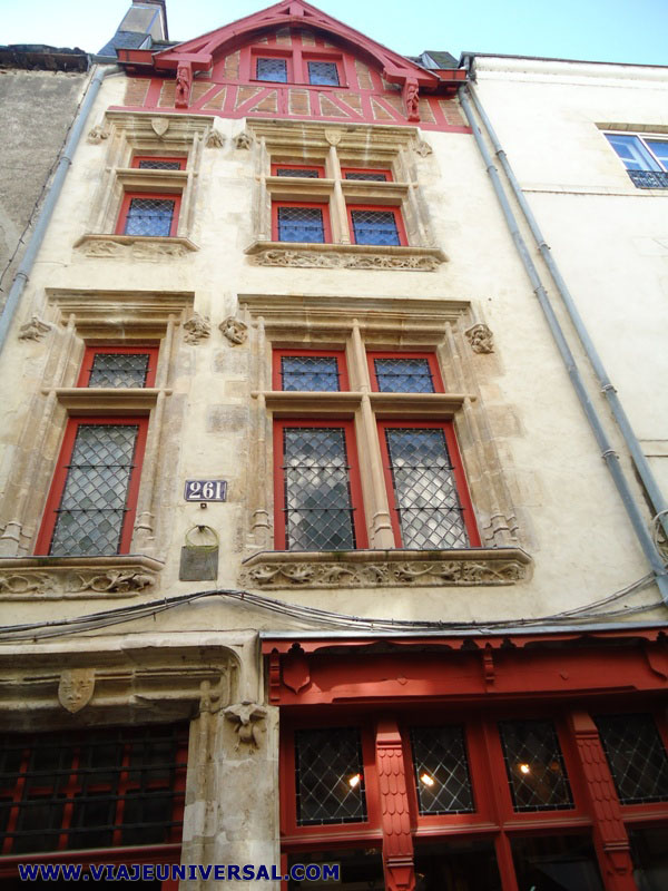 Una de las casas más bonitas que aún se conservan en Orléans de las edificadas en la Edad Media, se halla situada en la rue Bourgogne 261. Es una gran residencia construida con paneles de madera, teniendo su característica principal por ángulo superior de la pared de un edificio cubierto por un tejado a dos aguas, destaca también, por su mezcla de paneles de madera y sillares de piedra. |