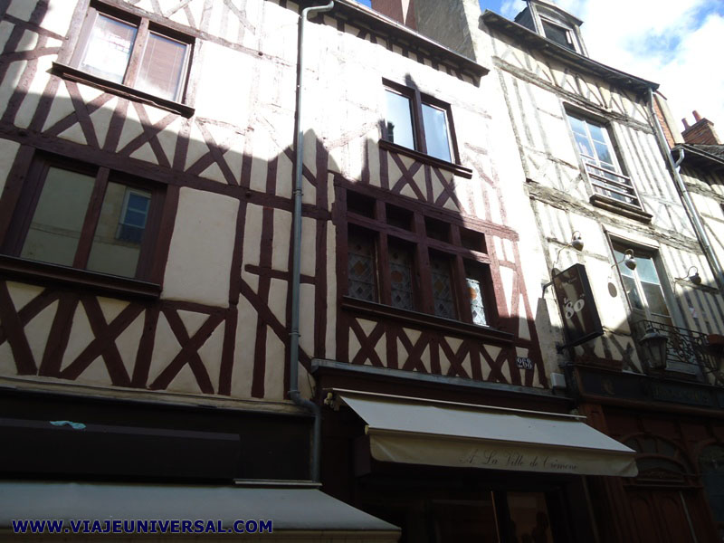 Una de las casas más bonitas que aún se conservan en Orléans de las edificadas en la Edad Media, se hallan situadas en la rue Bourgogne 270,268,266. Es una gran residencia construida con paneles de madera que describen la cruz de San Andrés, en rejillas y cruzados. |