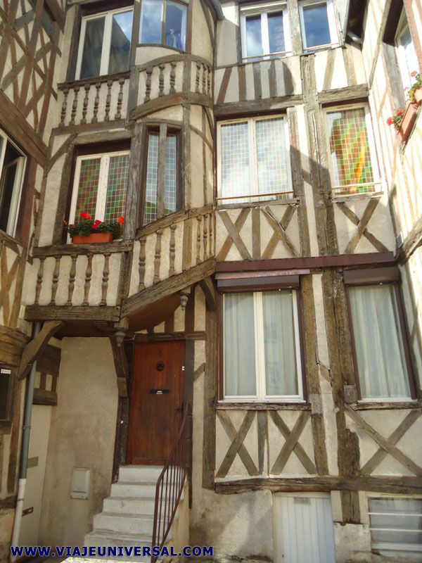 | Una de las casas más bonitas que aún se conservan en Orléans de las edificadas en la Edad Media es la situada en el segundo cruce de la rue des St Eloi en el número 1. Es una gran residencia construida con paneles de madera, teniendo su característica principal es su falta de simétrica, esta edificada en distintos niveles y formas marcadas por la escalera que se adivina desde el exterior por su bonita balaustrada de madera. |