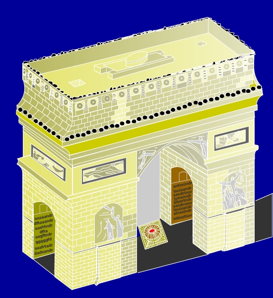 El Arco de Triunfo se sitúa en el extremo de la avenida de los Campos Elíseos. Se localiza en una plaza donde confluyen doce avenidas. Algunas de entre ellas llevan el nombre de victorias de Napoleón (Wagram, Léna, Friedland), de famosos generales del Imperio (Marceau, Hoche, Carnot) y el Gran Ejército.