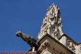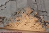 La terraza de la torre esta decorada sobre las ménsulas con personajes fantásticos, donde además se pueden ver ángeles, músicos, profetas que enmarcan las ventanas del segundo y tercer piso.