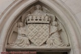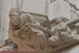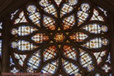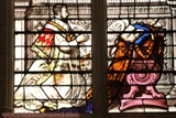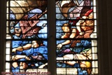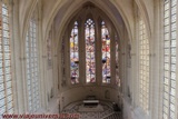 Las ventanas flamígeras conservan unos preciosos vitrales construidos en 1555 por el famoso artesano Nicolás Beaurain. Bajo los arcos se encuentran una serie de ménsulas decoradas con los símbolos de los cuatro evangelistas: San Juan, San Lucas, San Mateo y San Marcos. Fueron los encargados retransmitir las enseñanzas de Cristo y están representados por un nombre y tres animales alados. También se puede ver ángeles que tocan instrumentos musicales: gaita, cornamusa, flauta, etc.