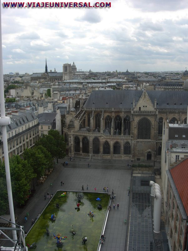 Centro Georges Pompidou, al fondo la Iglesia de Saint Merry en contrate de la modernidad con la antigüedad